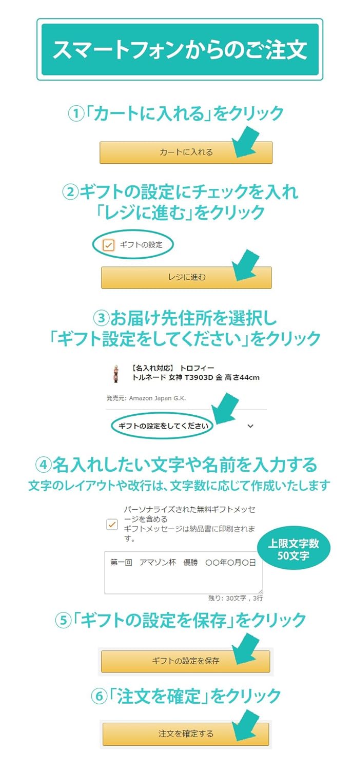 商品に記入したい文字をカートに入れた後「ギフトの設定」から「ギフトメッセージ欄」に記入ください。誤字脱字にはご注意ください。