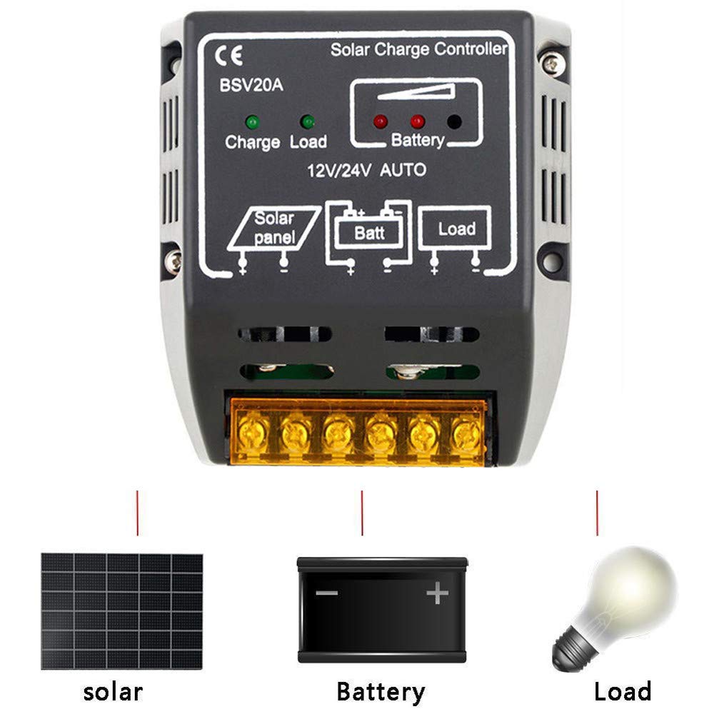 12V/24V 20A Chartsea ソーラーパネル A B07K4CF2X6 ブラック L 安全保護 バッテリーレギュレータ 充電コントローラー-タオル