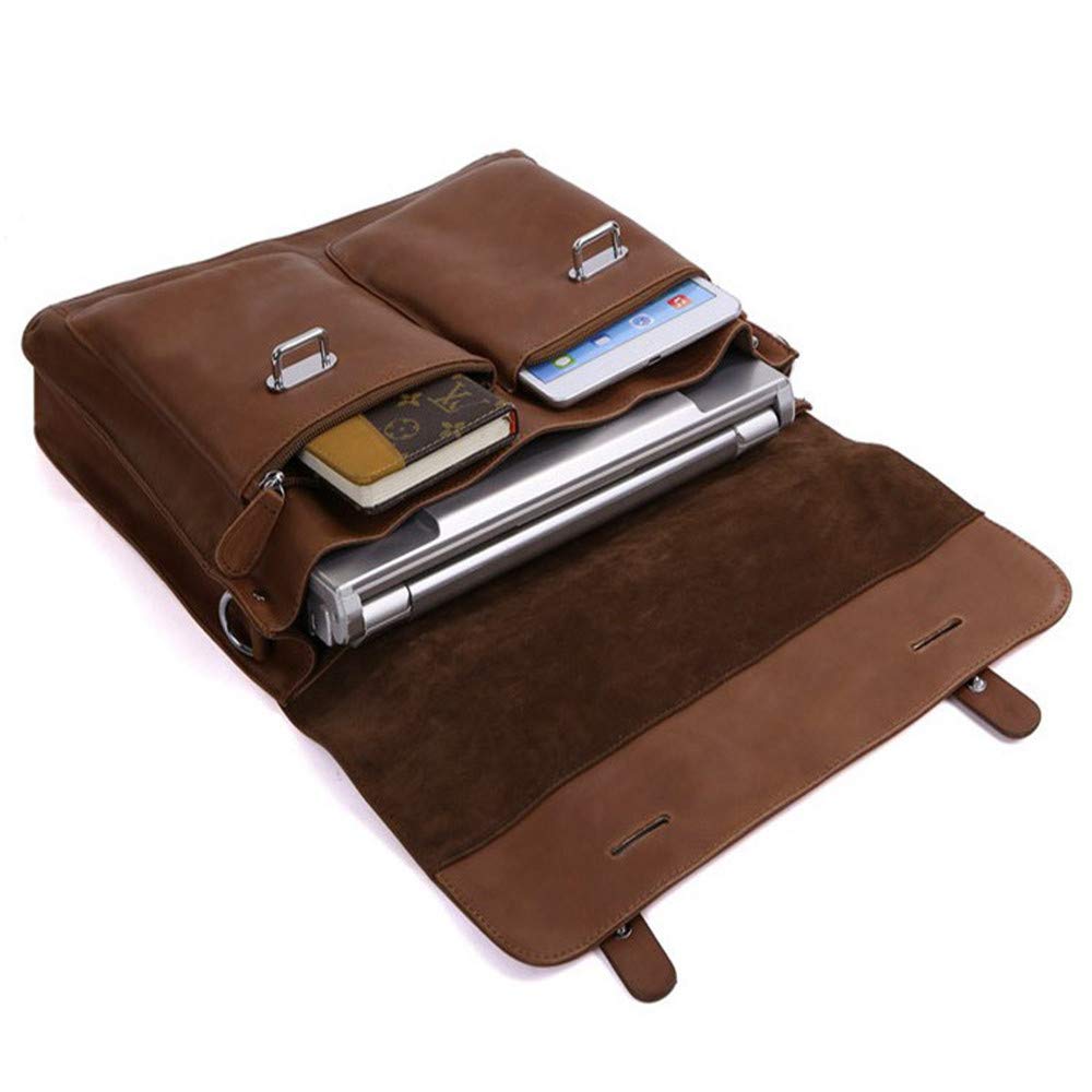 大容量 13.3インチブリーフケースラップトップバッグ 13 ユニセックスショルダーバッグヴィンテージレザーブリーフケース12 キャリングバッグ ビジネスバッグ ショルダー撥水 B07Q8GKPBM 褐色 褐色) : (色 ビジネスバッグ 男女兼用 対応-PCバッグケーススリーブ