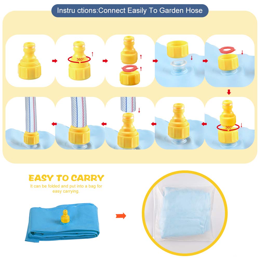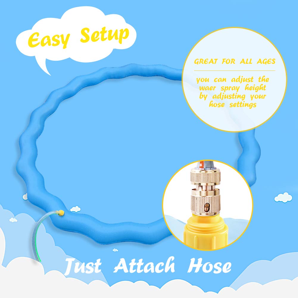 膨らませて水ホースに引っ掛けるだけ。水を入れると直径68インチになります。4~10歳のお子様に最適で、男の子にも女の子にも楽しい夏の時間をお過ごしください。