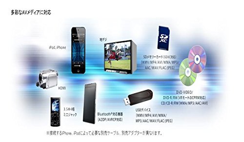 ■メディア対応力 : USB、SDメモリーカードに保存した様々な楽曲や映像ファイルの再生が可能。ハイレゾ音源(192kHz/24bit)再生対応。最大解像度1920px×1080px対応。