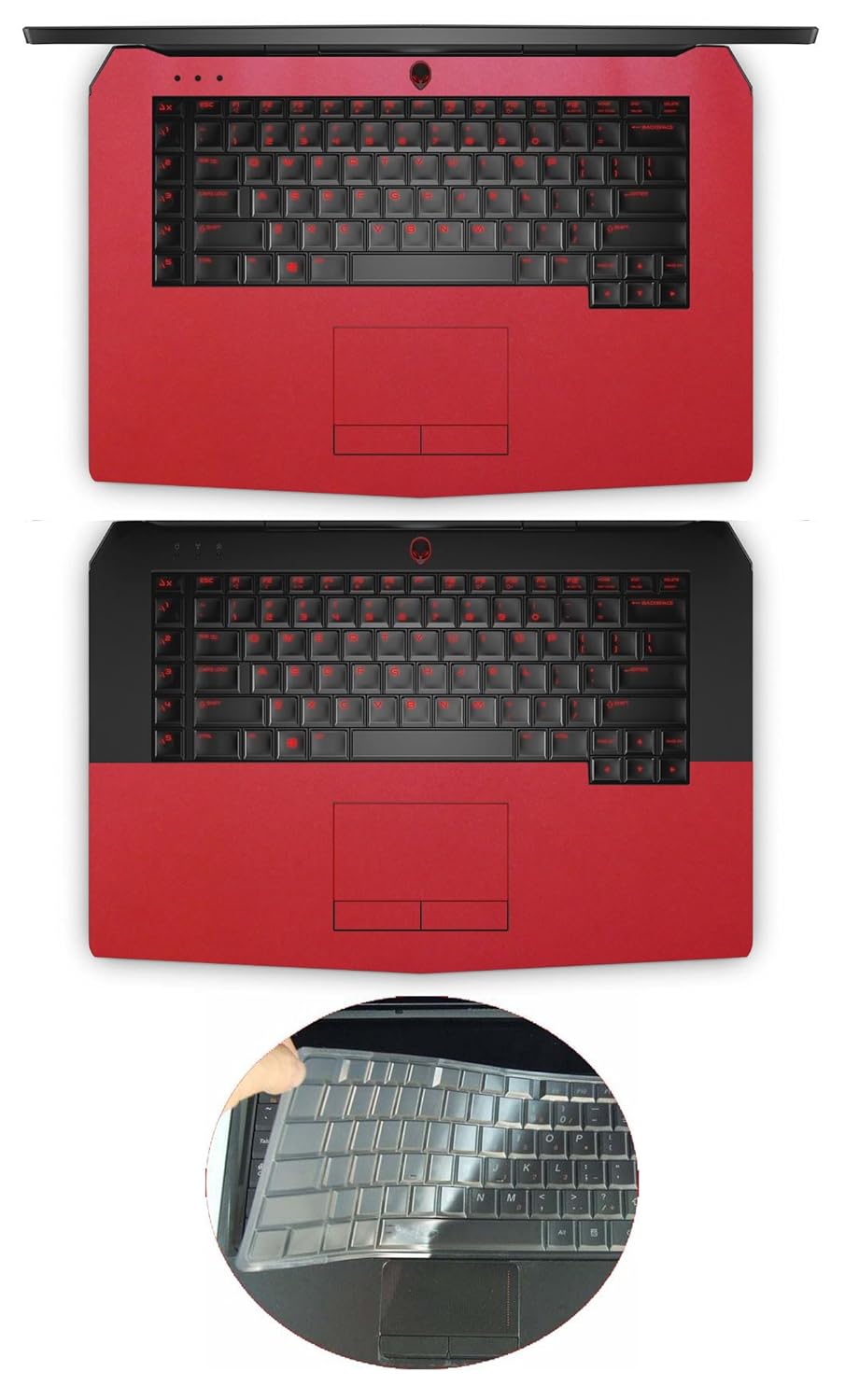 B072QXZVQK skin cover+keyboard palmrest cover+half palmrest red shimmery 2015バージョン)ゲーム ( 15 Alienware Dell " 15.6 TPUキーボードカバープロテクターfor in1フル+半分パームレストタッチパッドステッカー+ 3-リストレスト