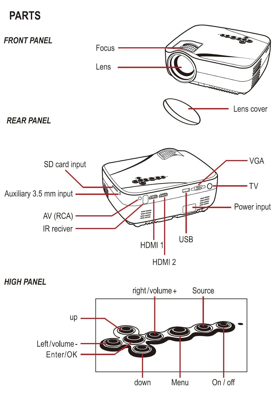 パッキングリスト:ホストX1リモコンX1 1つと3つのAVラインX1電源アダプタX1ベースリフトナットX1マニュアルX1ボックスX1