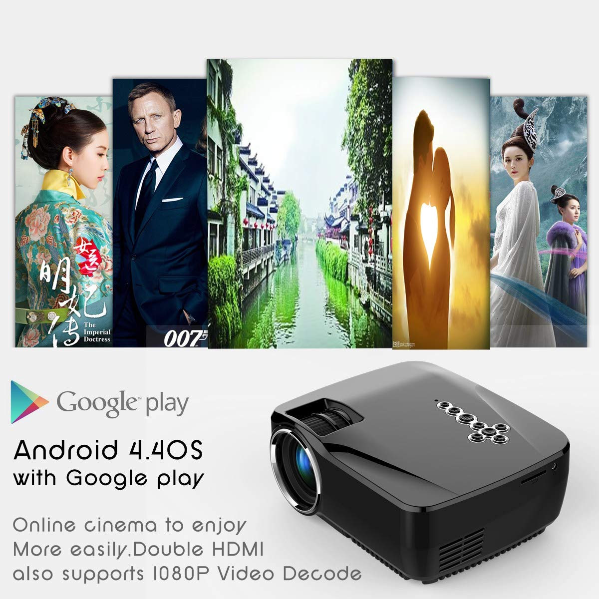 聴覚の饗宴:オールラウンドシネマ効果、ビルトイン忠実度のサウンドは、外部接続なしで接続することができます、あなたにオールラウンドシネマ効果をもたらすことができる、低ノイズ設計を実行し、 、長い機械寿命- WIFI接続:スマートプロジェクター、WIFI接続、画面付きワイヤレス、Apple Android電話、タブレットなどのデバイス、同じ画面のワイヤレス