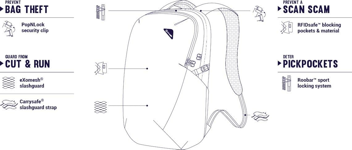 仕 様:RFIDsafeブロッキング(スキミング防止)テクノロジー(周波数遮断範囲:10MHz-3 GHz)/eXomeshスラッシュガード/Carrysafeスラッシュガードストラップ/Roobarロッキングシステム/PopNLockセキュリティクリップ/メッシュジッパーポケット、オーガナイザーポケット/PCスリーブ/キャリーハンドル/キークリップ- 表地: ナイロン