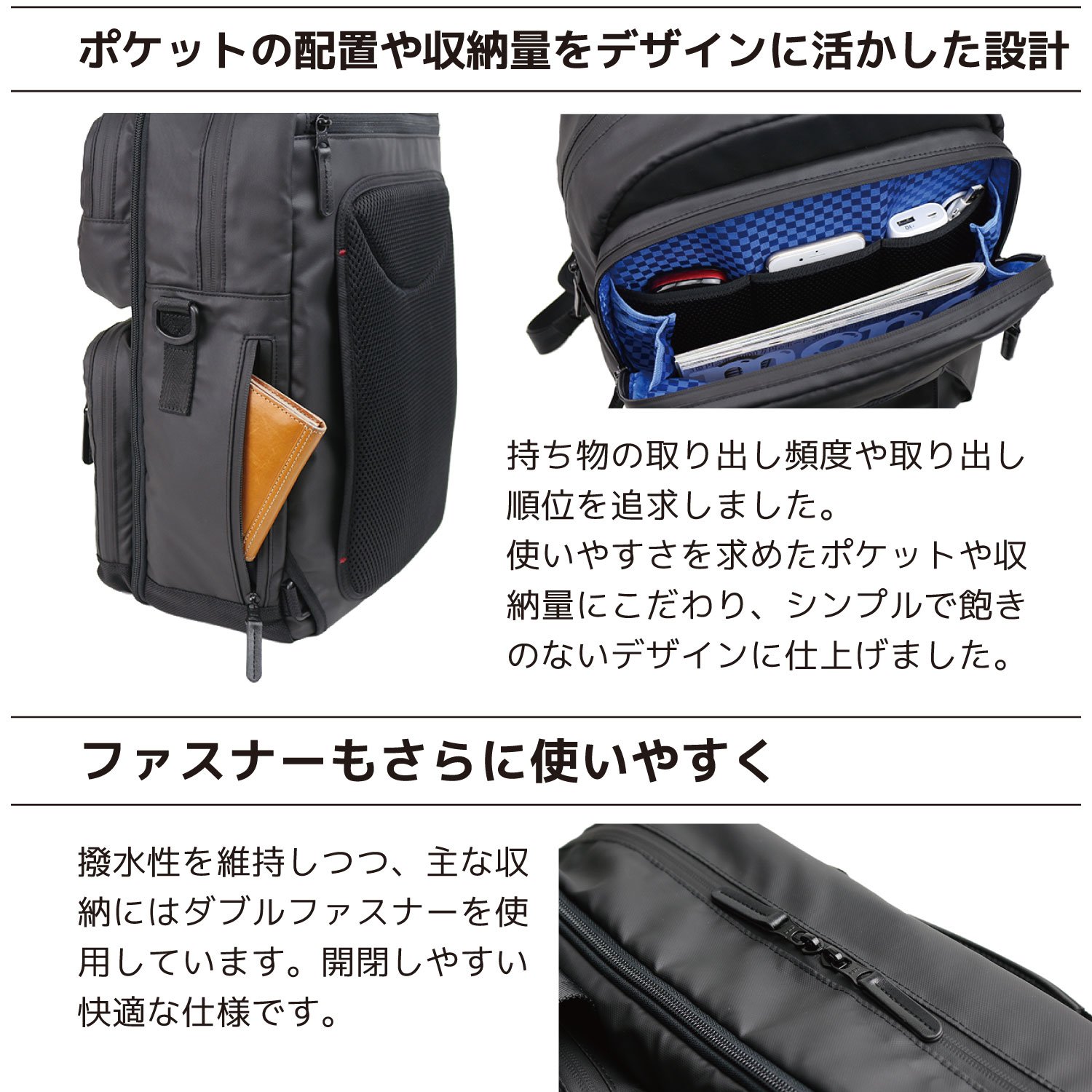 表面には撥水加工を施し、丈夫さ耐久性に加えて、軽量化と防水性にすぐれているカバンシリーズ。