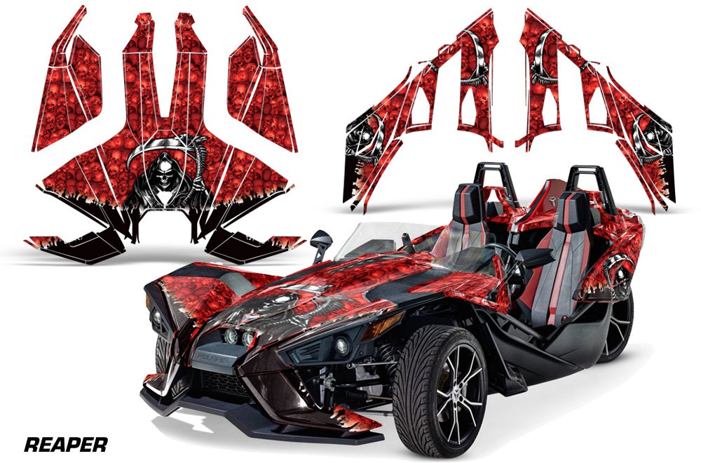Racing AMR GraphicsポラリスSlingshot B01MT9DEIM Reaperレッド – 2016ビニールラップフルキット – 2015 SL-バイク用ステッカーデカール