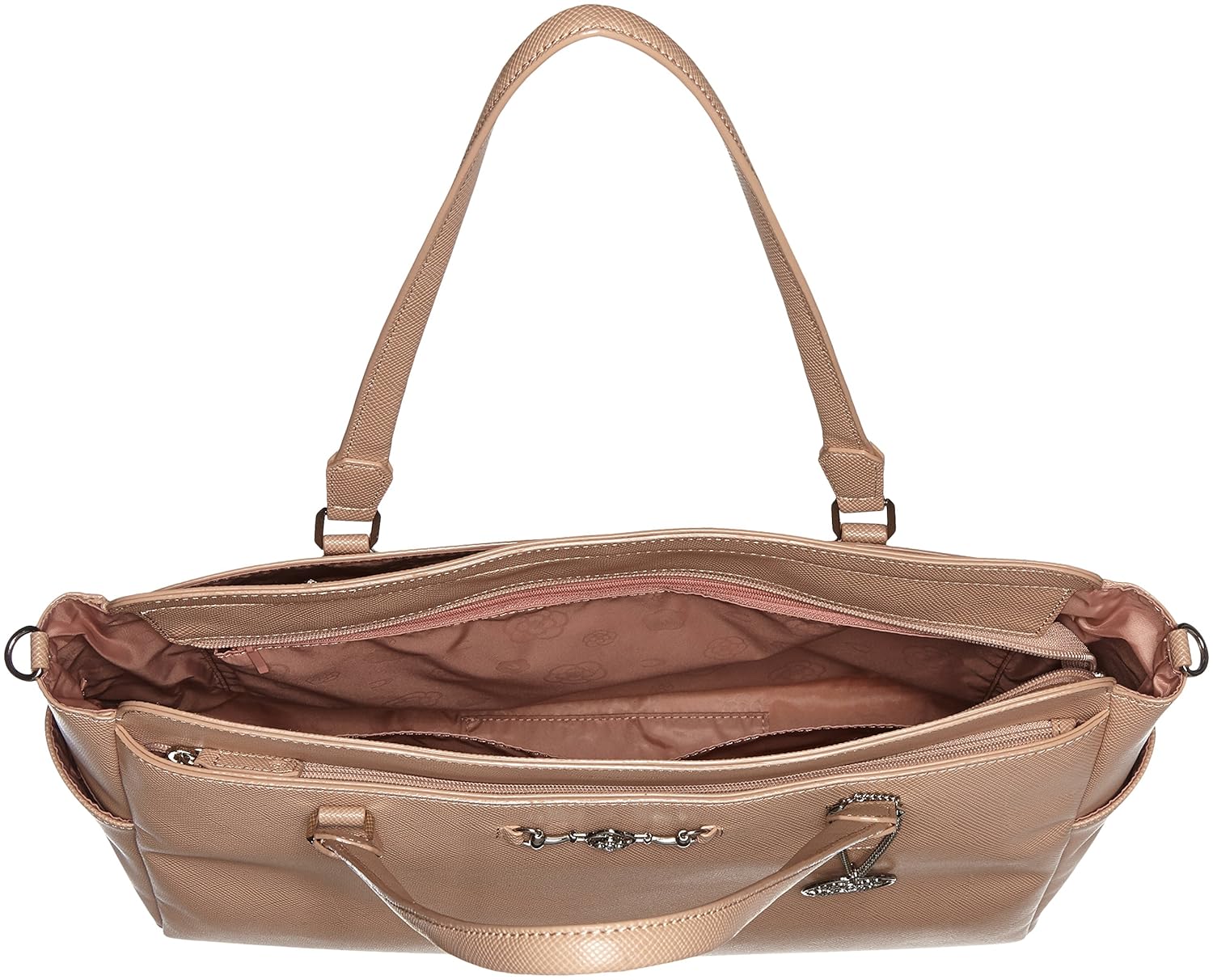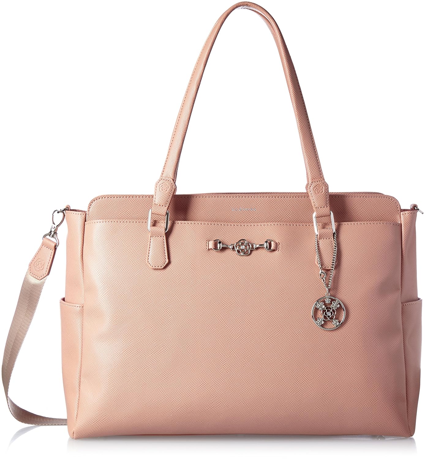 オリジナルのカメリアビット金具がキリっとしまった印象のワーズシリーズ?型押し合皮を使用し、傷や汚れが目立ちにくく、甘辛なキャリア向けなトートライン。通勤バッグとしてデイリーに使えるA4サイズも楽々収納可能なトートバッグです。荷物が多めな方でも、ゆとり良くご使用頂けます。ブラックとベージュの2色展開で揃えました。フレッシャーズにもおススメ?取り外しできる可愛いオリジナルのチャーム付き?