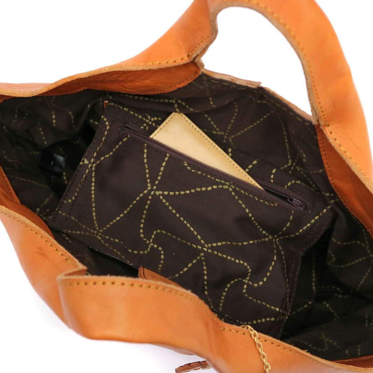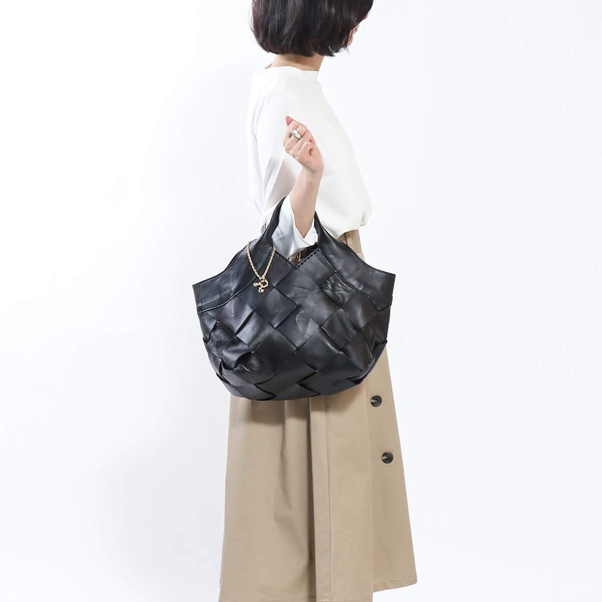 表地: レザーrobitaの中でも15年以上続くロングランシリーズ「anyam nya robita」のトートバッグ。斜めに編み込まれた幅広のメッシュレザーが特徴で、手の込んだ過程から生まれるアンティーク感が魅力的です。どんなスタイリングにも合わせやすいアイテムとなっています。メインルームは普段使いに丁度いいサイズで、財布やスマートフォンのほかにも余裕を持って荷物を収納できる大きさです。また内側には3つのポケットが設けられており、小物類の整理整頓も可能となっています。