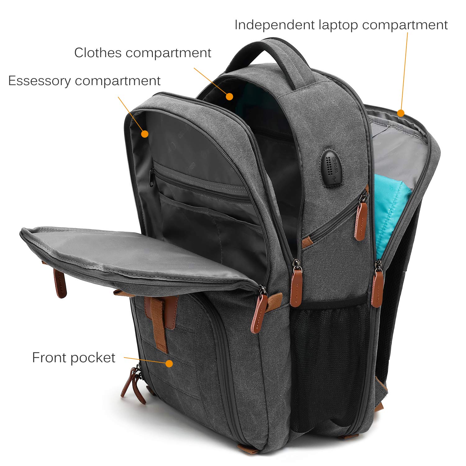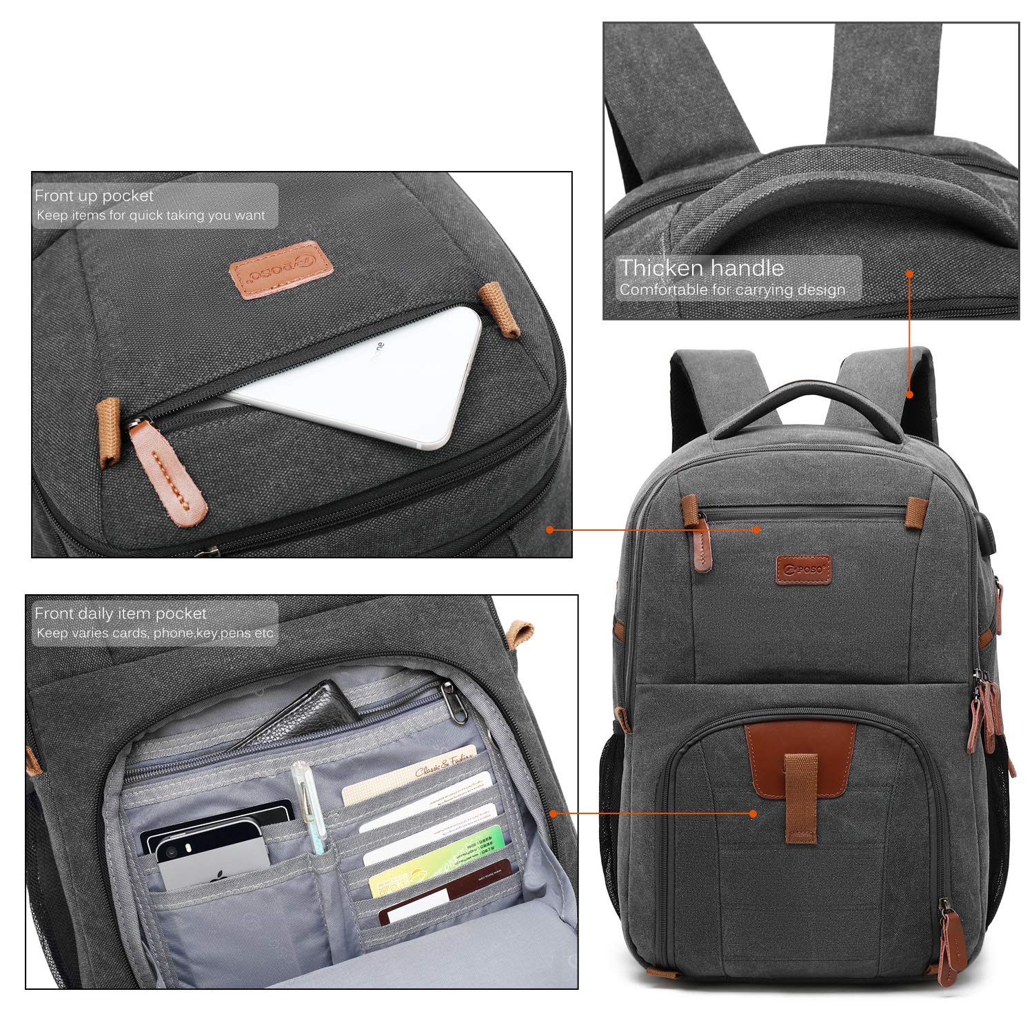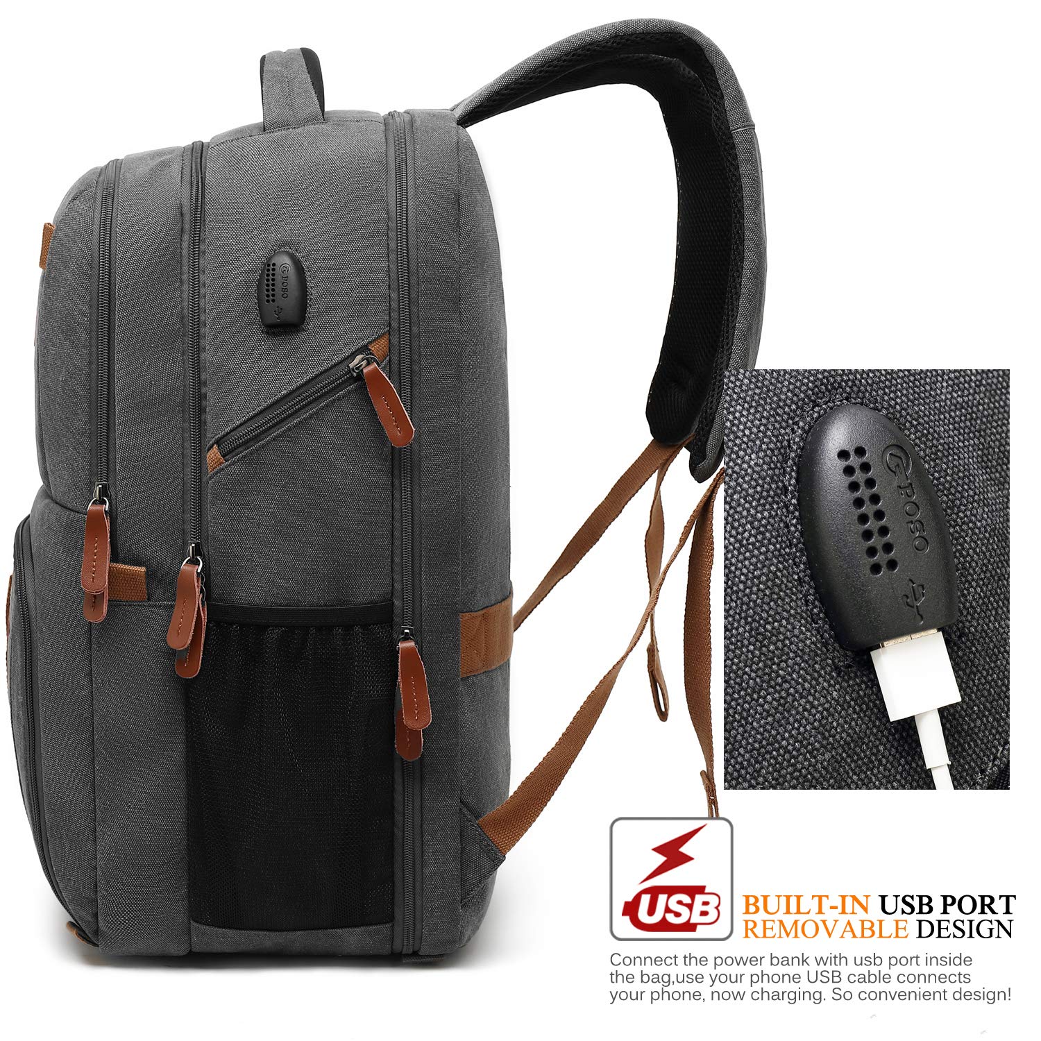 防水 USBポート付き コンピューターバッグ 17.3インチ ノートパソコン用バックパック POSO ビジネスリュックサック B07PR1XYQP Grey Dark Canvas Inches 17.3 Inches 17.3 バックパック メンズ マルチコンパートメント ナップサック ハイキング-PCバッグケーススリーブ