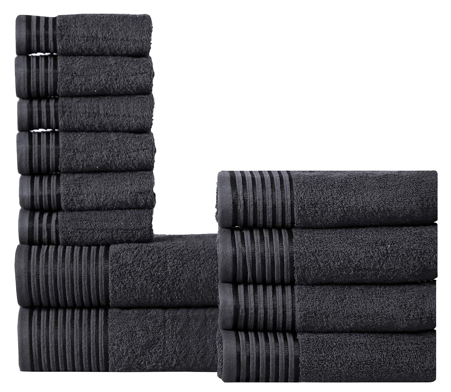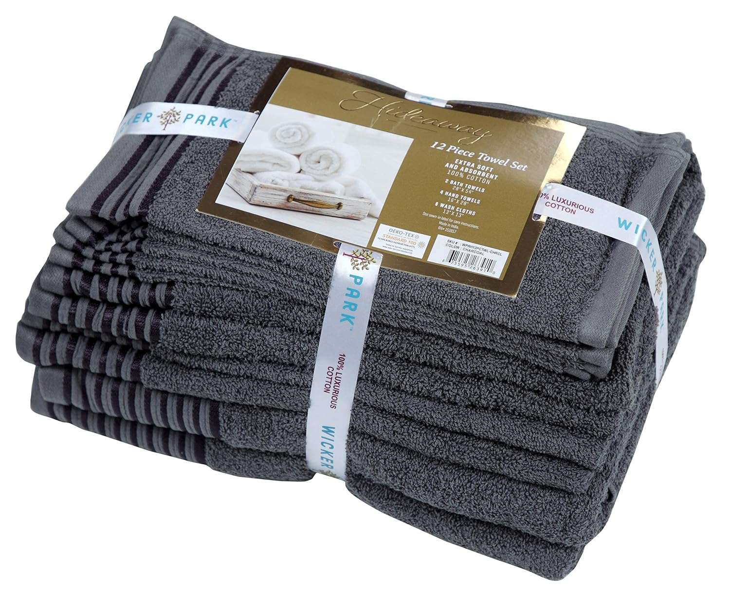 長繊維綿 コットン100%タオルセット ウルトラソフト GSM 600 Park Wicker スパホテル品質 12 of Set チャコールブラック B07JM4L61V WPRH12PCTWL-CHRCL ブラック 12 of Set 洗濯機洗い可 超吸収性-タオル。