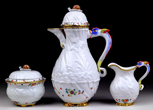 カップ×2(口径82mm 高さ52mm)ソーサー×2(直径150mm)デザートディッシュー×2(直径200mm)大変希少な作品なので最後までお読みになってからご入札ください! ?マイセンを代表する最高級テーブルウェア、ブリュール伯爵献上品? マイセン磁器テーブルウエアの古典代表作 オリジナルはハインリッヒ?フォン?ブリュール伯爵(1700~1763年)のためにつくられました。 白磁に白鳥や鷺のレリーフが刻まれ、取手にはドルフィン、蓋のつまみは蝸牛の優雅なシリーズです。 このスワンサービスは1737~41年にマイセンの造型の基礎を築いたヨハン?ヨアヒム?ケンドラーとヨハン?フリードリッヒ?エバーラインにより型が作られ、ヨハン? グレゴール?ヘロルトによって絵付けがなされました。 西洋磁器、歴史上伝説の3人によって完成された作品です。